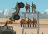 Jump your jeep into the block structures and knock all of them over.